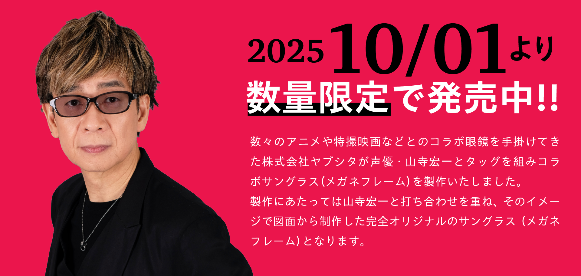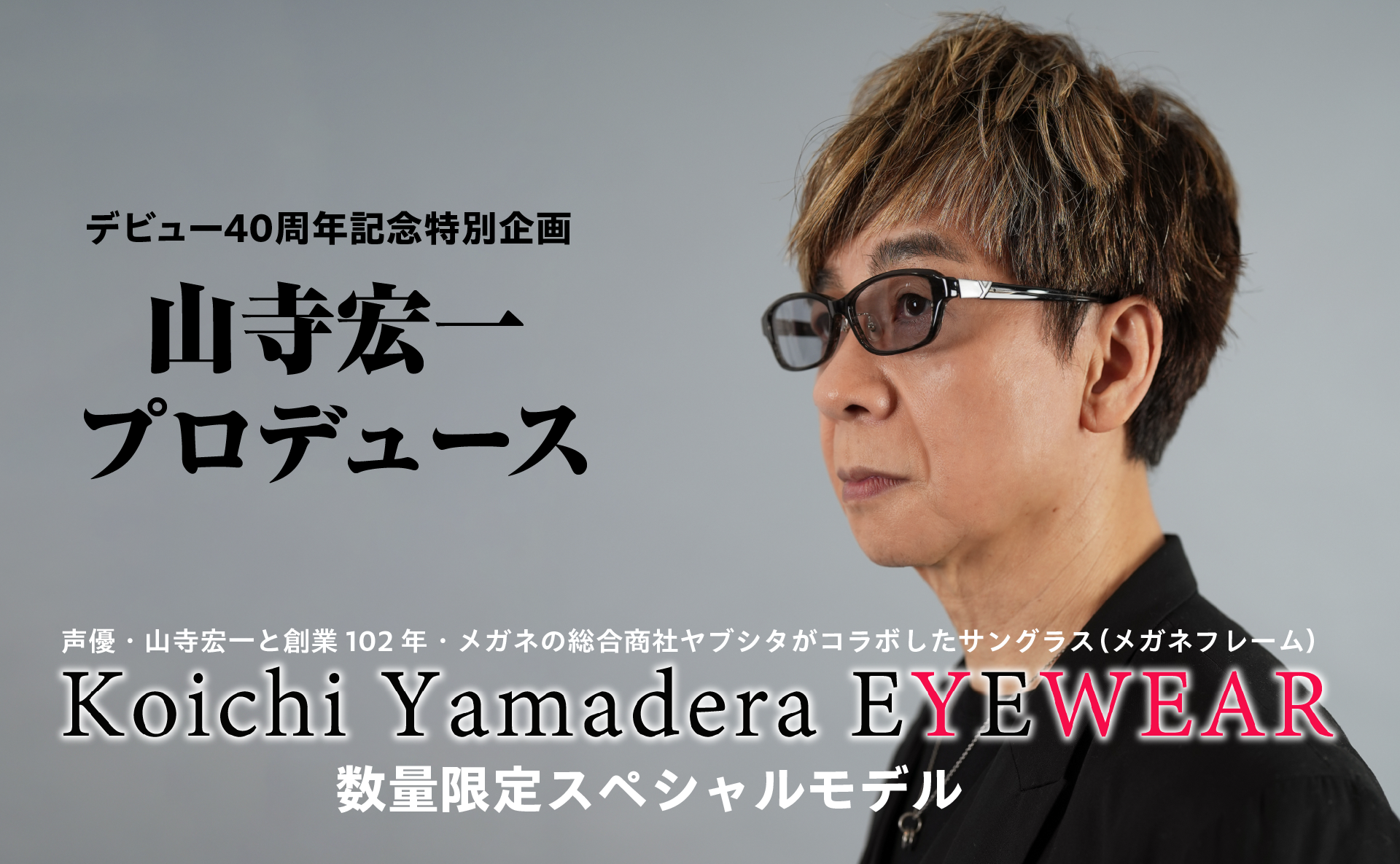 山寺宏一デビュー40周年を記念しオリジナルサングラス(メガネフレーム)『Koichi Yamadera Eyewear』をプロデュースさせていただきました。