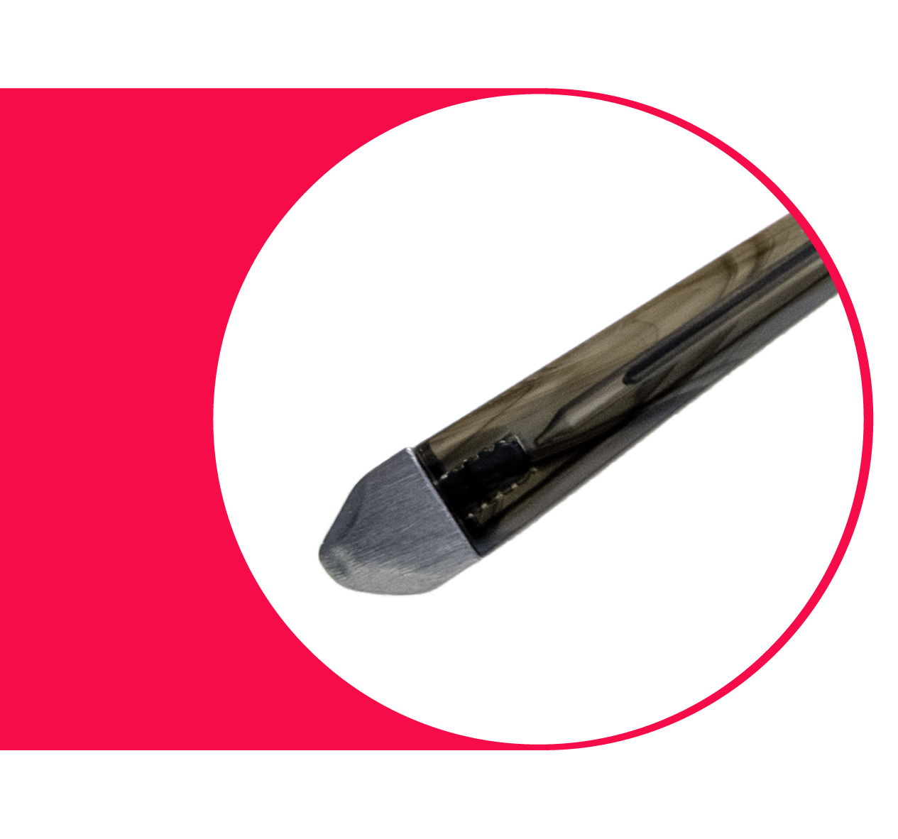 モダンの先には金属パーツが付いています。山寺宏一の「山」をイメージした金属パーツですが、このパーツがフロント(レンズが入る部分)の重量バランスを取る役割も果たしています。